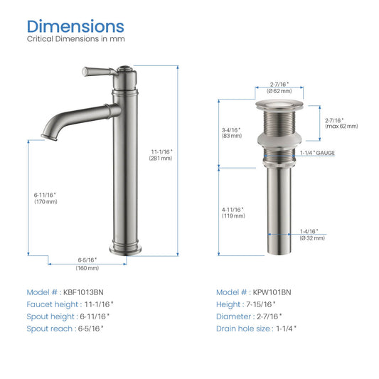 KIBI Victorian Single Handle Brushed Nickel Solid Brass Bathroom Vanity Vessel Sink Faucet With Pop-Up Drain Stopper Small Cover Without Overflow