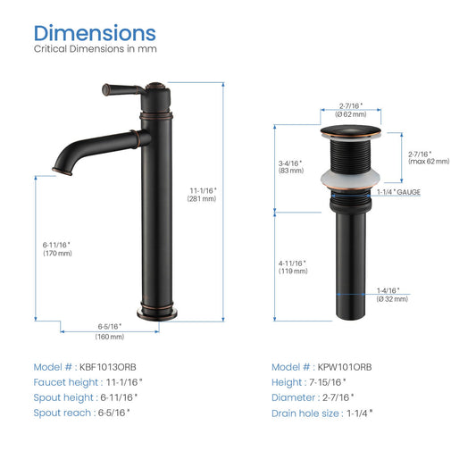 KIBI Victorian Single Handle Oil Rubbed Bronze Solid Brass Bathroom Vanity Vessel Sink Faucet With Pop-Up Drain Stopper Small Cover Without Overflow
