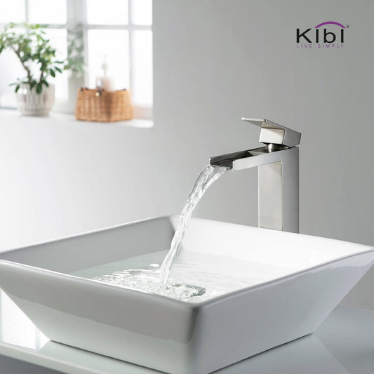 KIBI Waterfall Single Handle Brushed Nickel Solid Brass Bathroom Vanity Vessel Sink Faucet