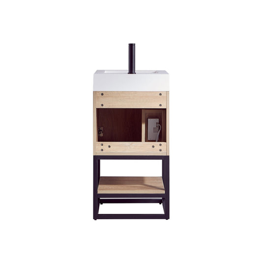 Vinnova Alistair 18" Single Sink Bath Vanity In North American Oak And Matte Black Finish With White Grain Stone Countertop