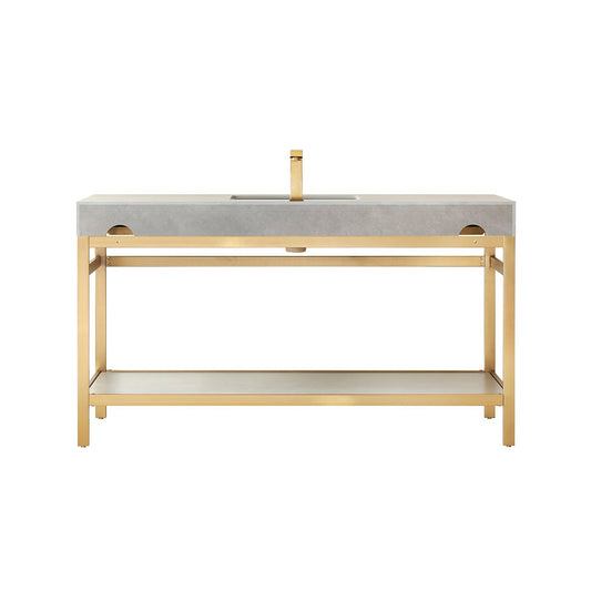 Vinnova Funes 60" Single Sink Bath Vanity In Brushed Gold Metal Support With Grey Sintered Stone Top