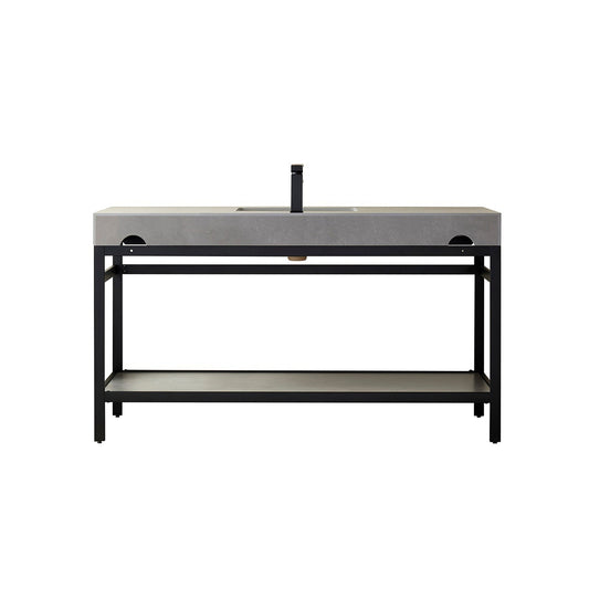 Vinnova Funes 60" Single Sink Bath Vanity In Matt Black Metal Support With Grey Sintered Stone Top