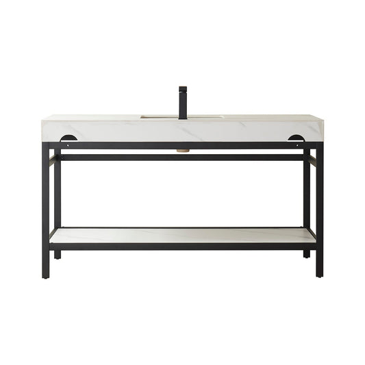 Vinnova Funes 60" Single Sink Bath Vanity In Matt Black Metal Support With White Sintered Stone Top