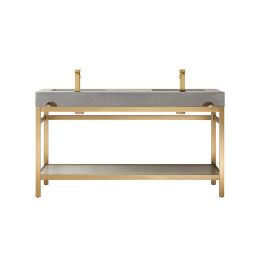 Vinnova Funes 60" Double Sink Bath Vanity In Brushed Gold Metal Support With Grey Sintered Stone Top