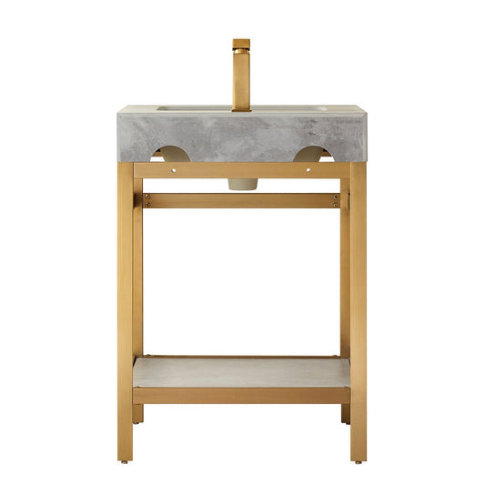Vinnova Funes 24" Single Sink Bath Vanity In Brushed Gold Metal Support With Grey Sintered Stone Top
