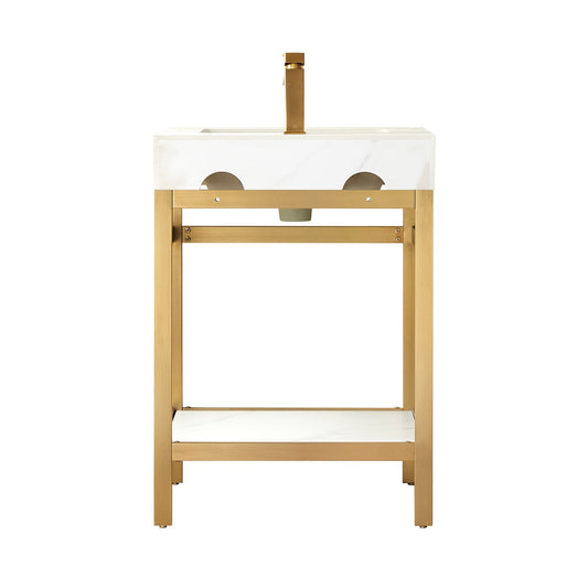 Vinnova Funes 24" Single Sink Bath Vanity In Brushed Gold Metal Support With White Sintered Stone Top