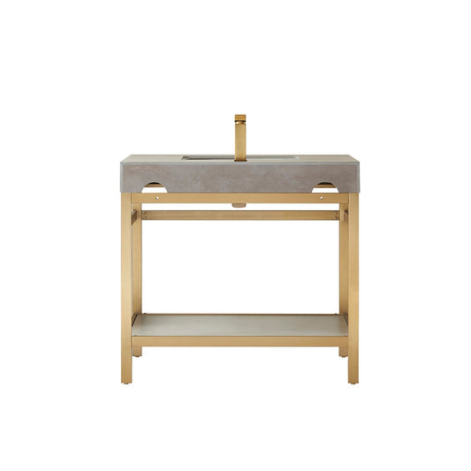 Vinnova Funes 36" Single Sink Bath Vanity In Brushed Gold Metal Support With Grey Sintered Stone Top