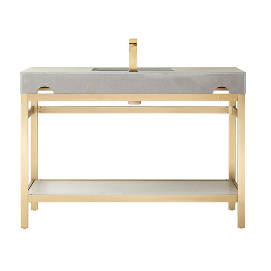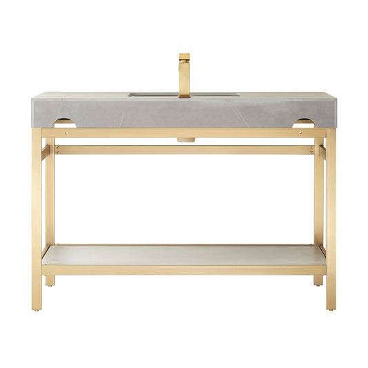 Vinnova Funes 48" Single Sink Bath Vanity In Brushed Gold Metal Support With Grey Sintered Stone Top