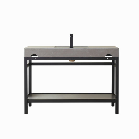 Vinnova Funes 48" Single Sink Bath Vanity In Matt Black Metal Support With Grey Sintered Stone Top