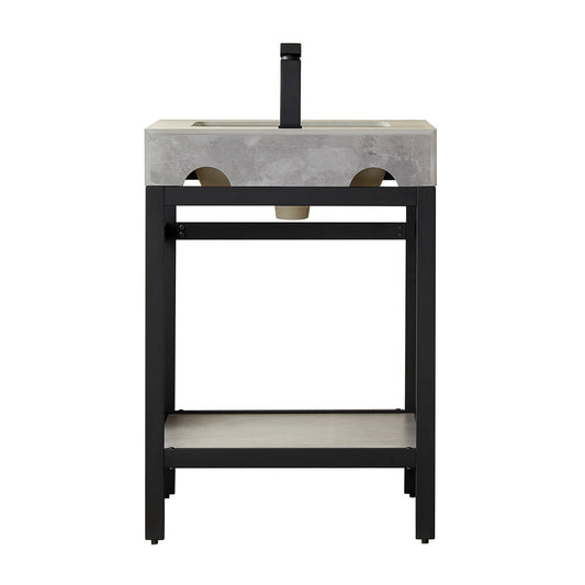 Vinnova Funes 24" Single Sink Bath Vanity In Matt Black Metal Support With Grey Sintered Stone Top