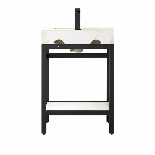 Vinnova Funes 24" Single Sink Bath Vanity In Matt Black Metal Support With White Sintered Stone Top