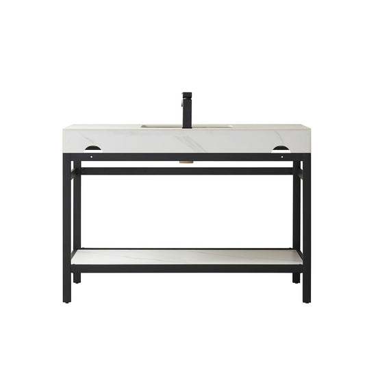 Vinnova Funes 48" Single Sink Bath Vanity In Matt Black Metal Support With White Sintered Stone Top