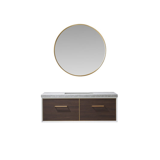 Vinnova Caparroso 48" Single Sink Floating Bathroom Vanity In Dark Walnut And Brushed Gold Hardware Finish With Grey Sintered Stone Top And Mirror
