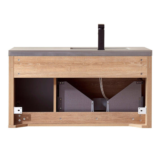 Vinnova Caparroso 48" Single Sink Floating Bathroom Vanity In Light Walnut And Matte Black Hardware Finish With Grey Sintered Stone Top