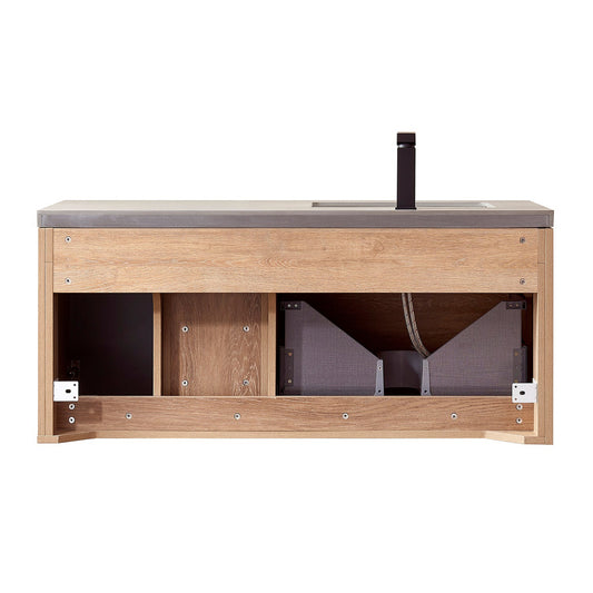 Vinnova Carcastillo 47" Single Sink Bath Vanity In North American Oak And Matte Black Hardware Finish With Grey Sintered Stone Top