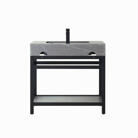 Vinnova Bilbao 36" Single Vanity With Matte Black Stainless Steel Bracket Match With Grey Sintered Stone Countertop Without Mirror