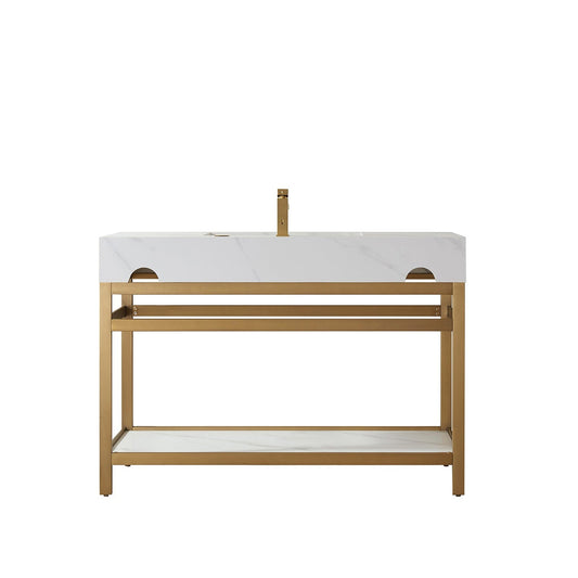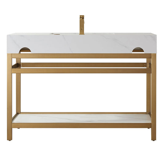 Vinnova Bilbao 48" Single Vanity With Brushed Gold Stainless Steel Bracket Match With Snow Mountain White Stone Countertop Without Mirror