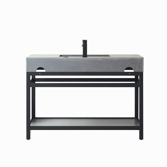 Vinnova Bilbao 48" Single Vanity With Matte Black Stainless Steel Bracket Match With Grey Sintered Stone Countertop Without Mirror