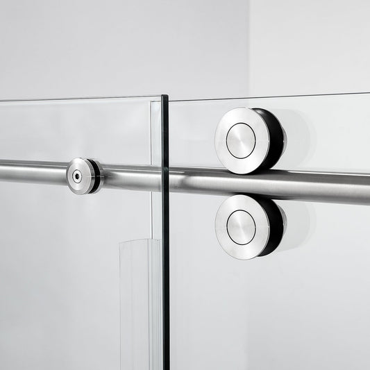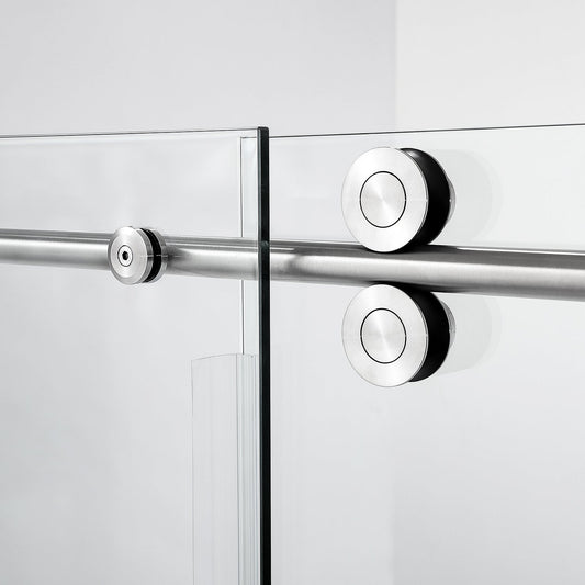 Vinnova Villena 64" x 78" Single Sliding Frameless Shower Door in Brushed Nickel Finish
