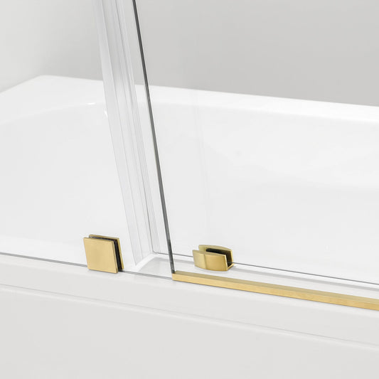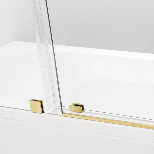 Vinnova Villena 60" x 58" Single Sliding Frameless Tub Door in Brushed Gold Finish