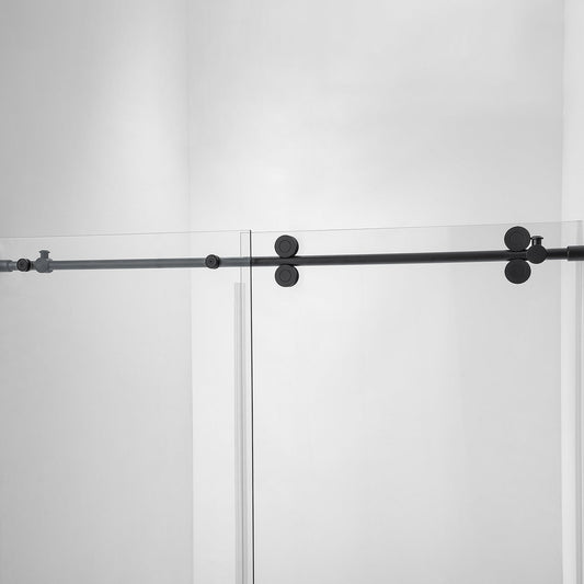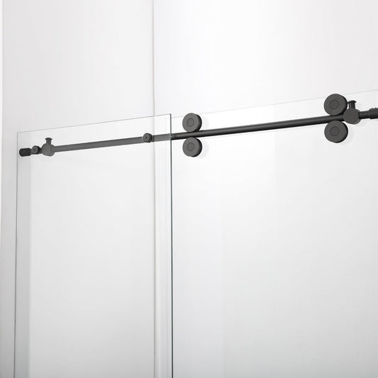 Vinnova Villena 64" x 78" Single Sliding Frameless Shower Door in Matte Black Finish