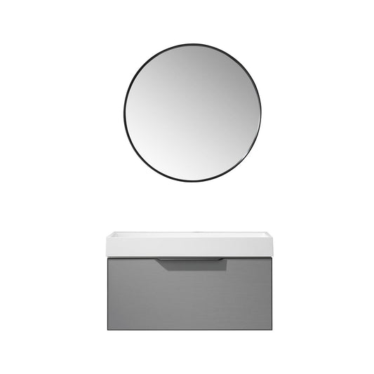 Vinnova Vegadeo 36" Single Sink Bath Vanity In Grey Finish With White One-Piece Composite Stone Sink Top And Mirror