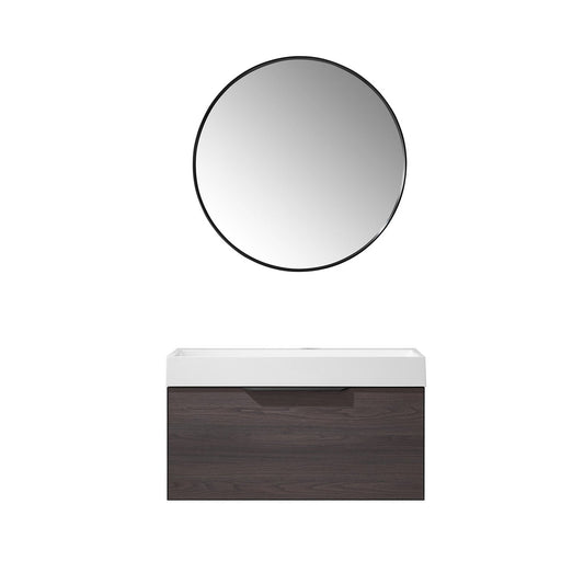 Vinnova Vegadeo 36" Single Sink Bath Vanity In Suleiman Oak Finish With White One-Piece Composite Stone Sink Top And Mirror