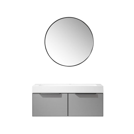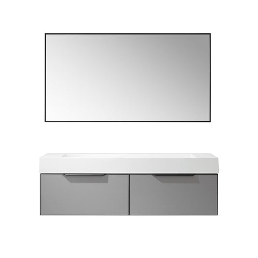 Vinnova Vegadeo 48" Single Sink Bath Vanity In Grey Finish With White One-Piece Composite Stone Sink Top And Mirror
