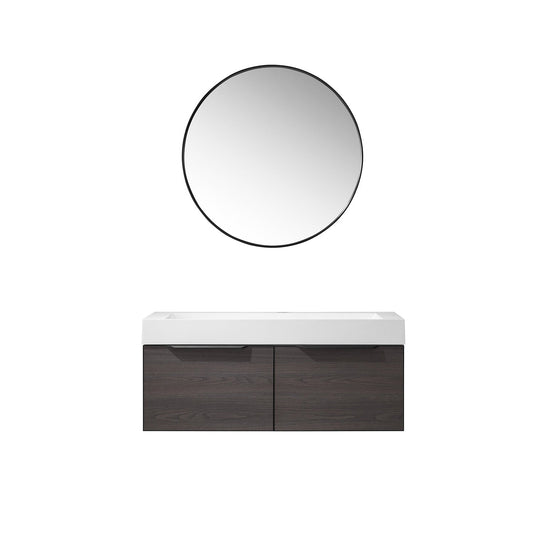 Vinnova Viella 48" Single Sink Bath Vanity In Rust Grey Finish With White Composite Countertop And Mirror
