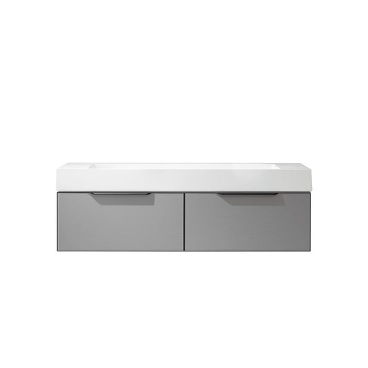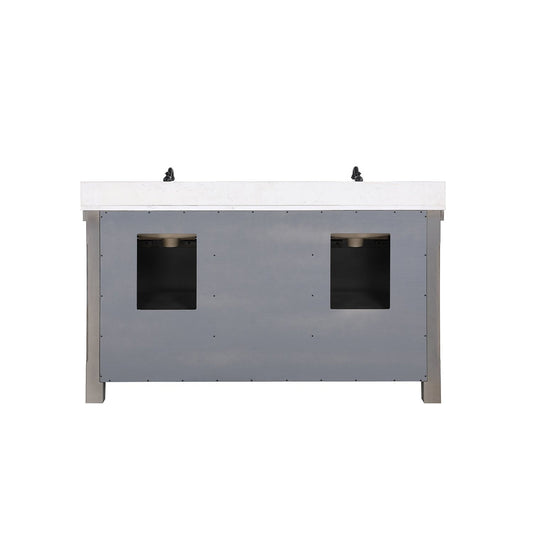 Vinnova Vegadeo 60" Double Sink Bath Vanity In Grey Finish With White One-Piece Composite Stone Sink Top