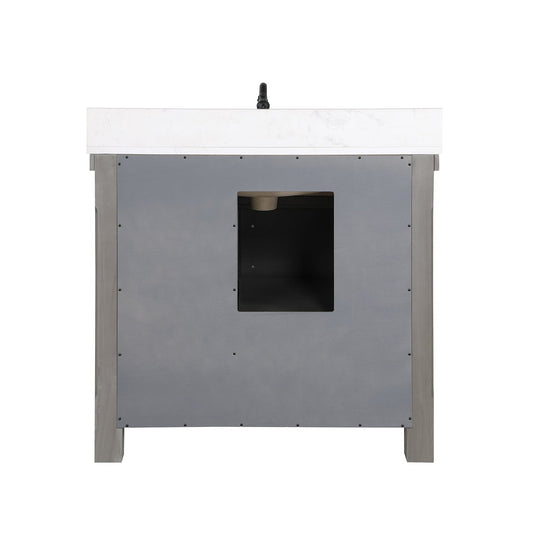Vinnova Vegadeo 36" Single Sink Bath Vanity In Grey Finish With White One-Piece Composite Stone Sink Top