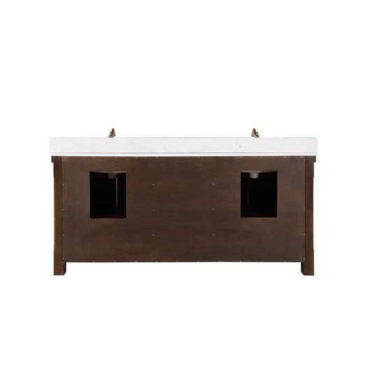 Vinnova Viella 60" Double Sink Bath Vanity In Deep Walnut Finish With White Composite Countertop