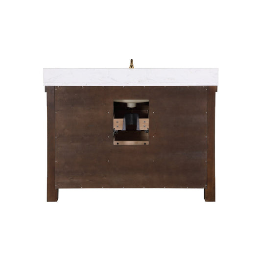 Vinnova Vegadeo 48" Single Sink Bath Vanity In Suleiman Oak Finish With White One-Piece Composite Stone Sink Top
