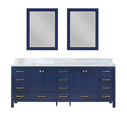 Vinnova Shannon 84" Double Vanity In Royal Blue And Composite Carrara White Stone Countertop And Mirror