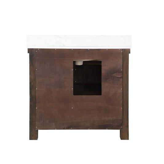 Vinnova Villareal 36" Single Bath Vanity In Weathered Pine With Composite Stone Top In White Finish And White Farmhouse Basin