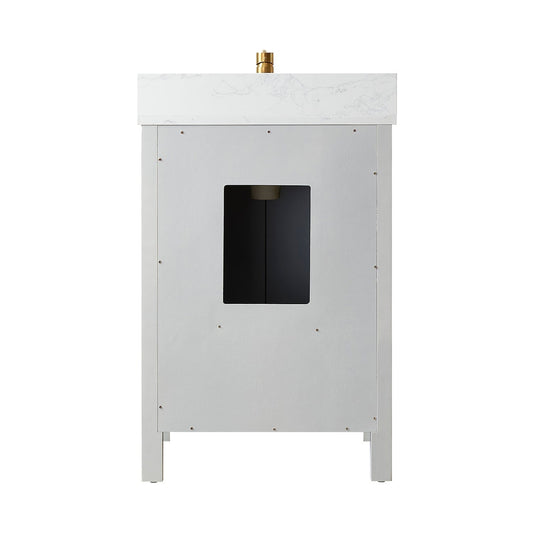 Vinnova Shannon 24" Single Vanity In White And Composite White Carrara Stone Countertop