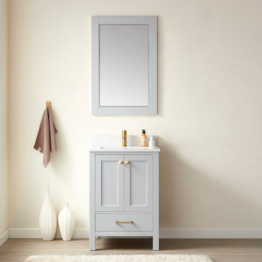 Vinnova Shannon 24" Single Vanity In Paris Grey And Composite Carrara White Stone Countertop And Mirror