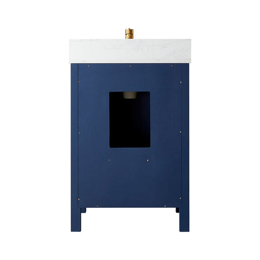 Vinnova Shannon 24" Single Vanity In Royal Blue And Composite Carrara White Stone Countertop