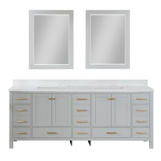 Vinnova Shannon 84" Double Vanity In Paris Grey And Composite Carrara White Stone Countertop And Mirror