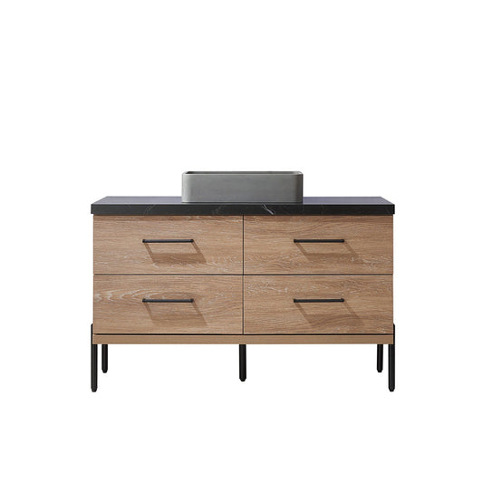 Vinnova Trento 48" Single Sink Bath Vanity In North American Oak With Black Sintered Stone Top With Rectangular Concrete Sink