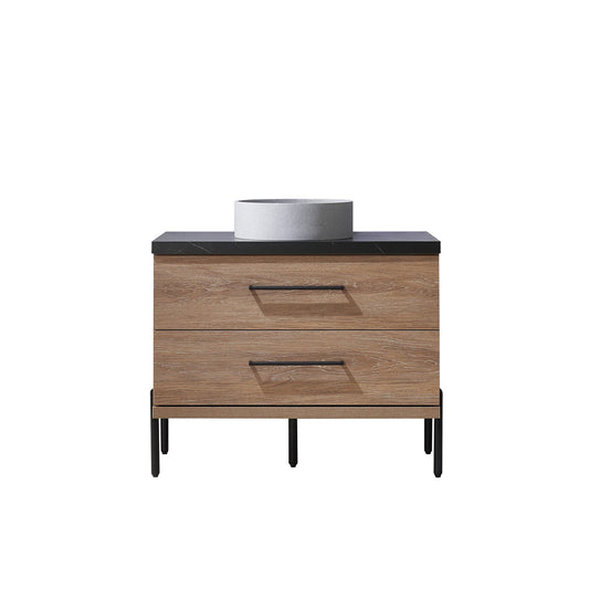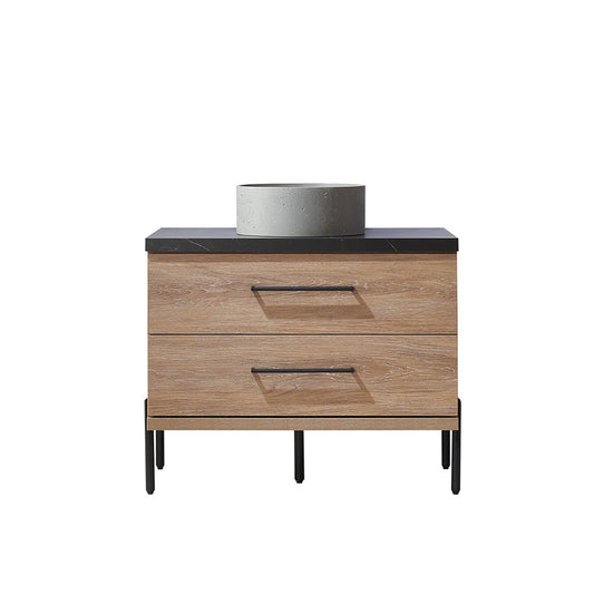 Vinnova Trento 36" Single Sink Bath Vanity In North American Oak With Black Sintered Stone Top With Circular Concrete Sink