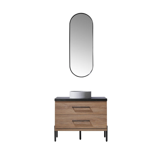 Vinnova Segovia 36" Single Sink Bath Vanity In Suleiman Oak Finish With Black Sintered Stone Top And Mirror