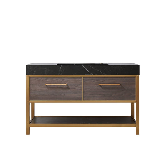 Vinnova Segovia 55" Single Sink Bath Vanity In Suleiman Oak Finish With Black Sintered Stone Top