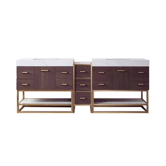 Vinnova Toledo 84" Double Sink Bath Vanity In Dark Walnut Finish With White Sintered Stone Top
