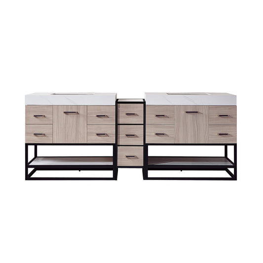 Vinnova Toledo 84" Double Sink Bath Vanity In Light Walnut Finish With White Sintered Stone Top