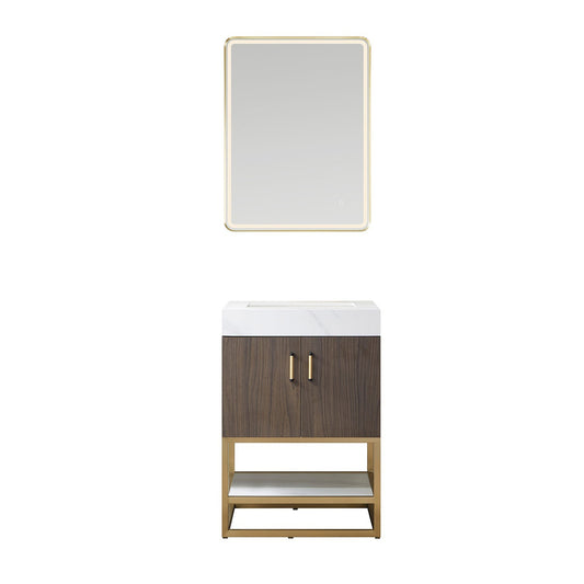 Vinnova Toledo 24" Single Sink Bath Vanity In Light Walnut Finish With White Sintered Stone Top And Mirror