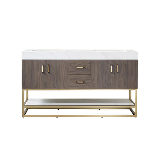 Vinnova Toledo 60" Double Sink Bath Vanity In Dark Walnut Finish With White Sintered Stone Top