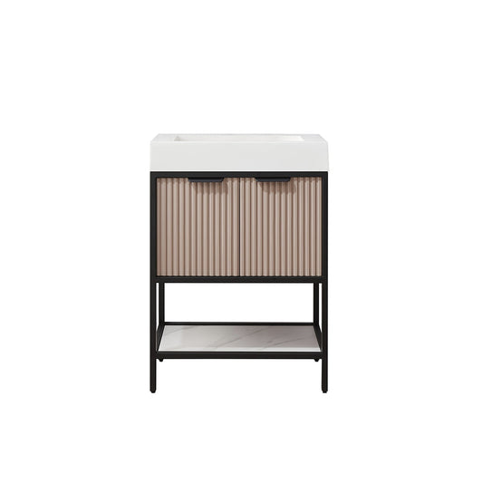 Vinnova Marcilla 24" Single Sink Bath Vanity In Almond Coffee With One-Piece Composite Stone Sink Top
