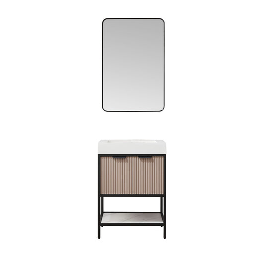 Vinnova Marcilla 24" Single Sink Bath Vanity In Almond Coffee With One-Piece Composite Stone Sink Top And Mirror