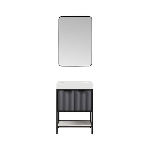 Vinnova Marcilla 24" Single Sink Bath Vanity In Grey With One-Piece Composite Stone Sink Top And Mirror